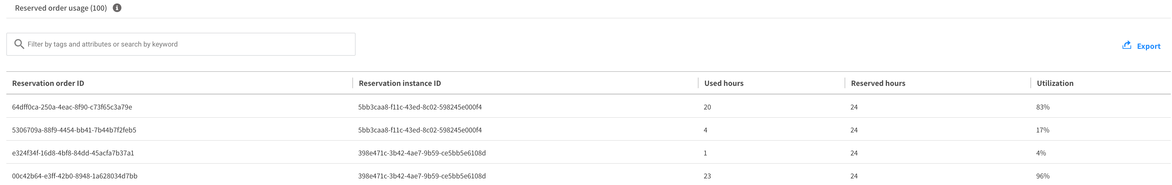 - Used hours: Number of reserved hours used for the specific reserved instance.