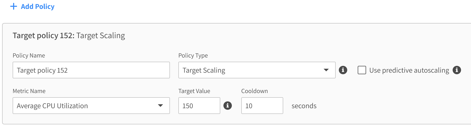 - Configure a target tracking scaling policy to keep the average aggregate CPU utilization of your Elastigroup instances at 50%.