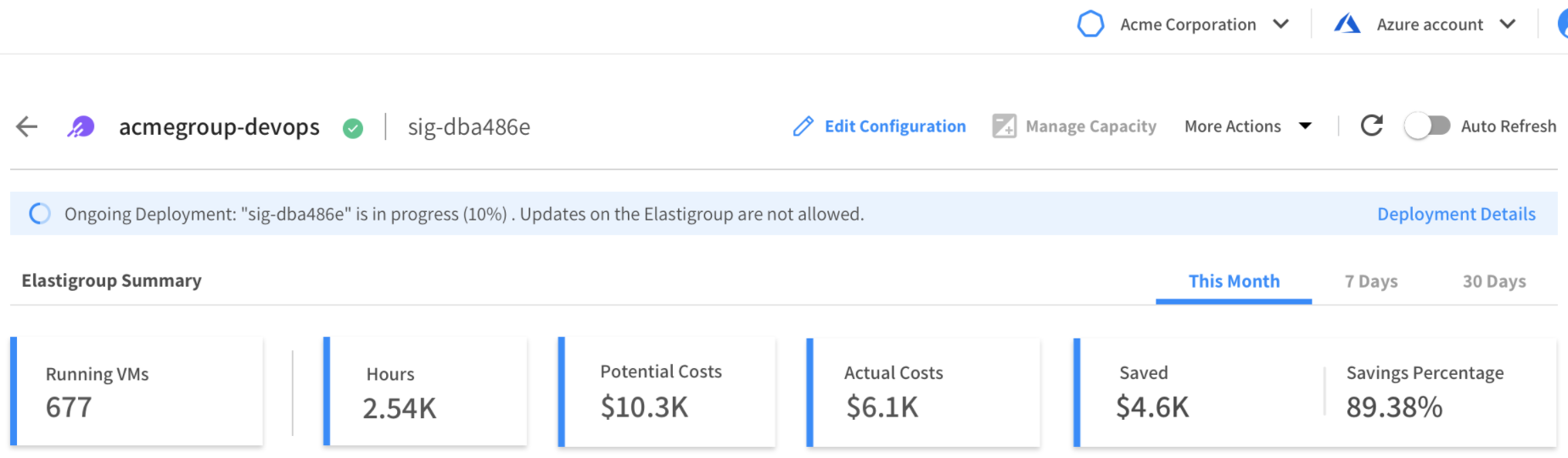 To view information about a deployment in progress or past deployments, go to the Deployments tab in your Elastigroup.