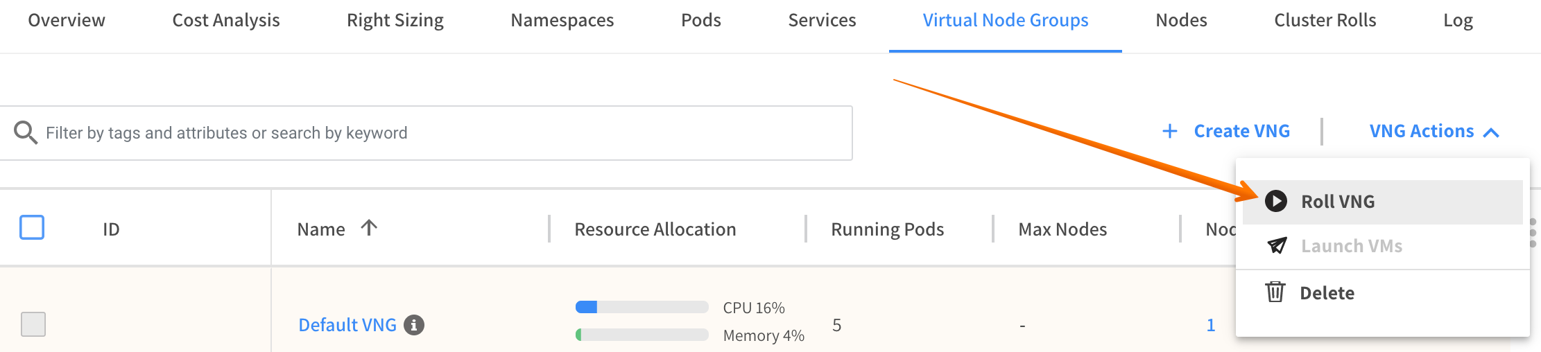 In your Ocean cluster, click the Virtual Node Groups tab.